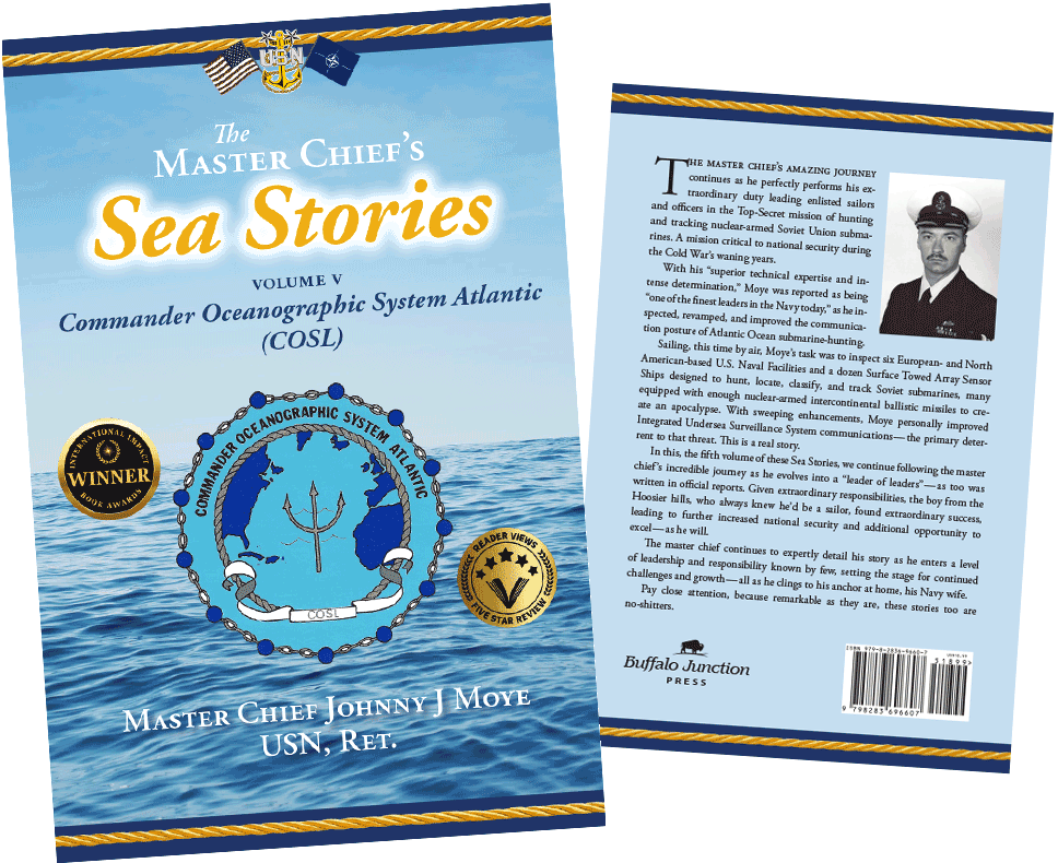 In this, the fifth volume of these Sea Stories, we continue following the master chief’s incredible journey as he evolves into a “leader of leaders” — as too was written in official reports. Given extraordinary responsibilities, the boy from the Hoosier hills, who always knew he’d be a sailor, found extraordinary success, leading to further increased national security and additional opportunity to excel — as he will.